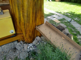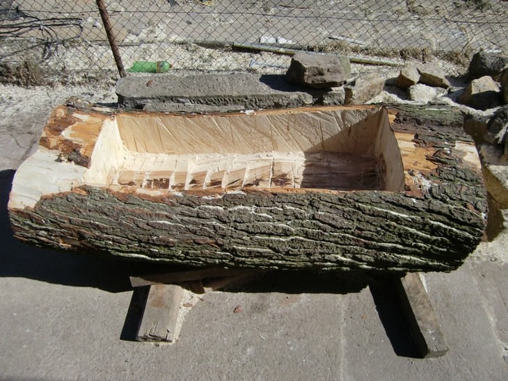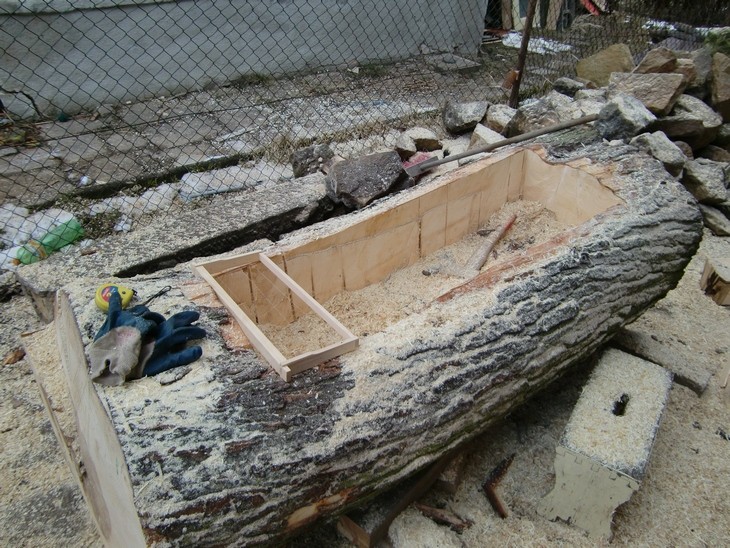 Rozhodl jsem se pro vydlabání a upravení vnitřního rozměru pro Langstroth 185. Nechci vyrobit klasický klát – dutinu s volnou stavbou. Bude sloužit jako každý jiný úl. Rozměrově tam bude cca 5 pater po 8 až 9 rámcích. Varroa dno, přepážky na zmenšování prostoru a pozorovací dveře.
