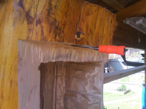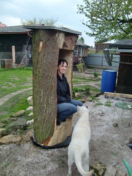 Teď přichází na řadu teslice a hoblík. To bude poslední „dlabání“ před postavením. Přeci jen to chce nejdříve postavit do roviny a až pak – posledních 8cm dočistit. Taktéž hlavně dostat do úhlu je žádoucí.